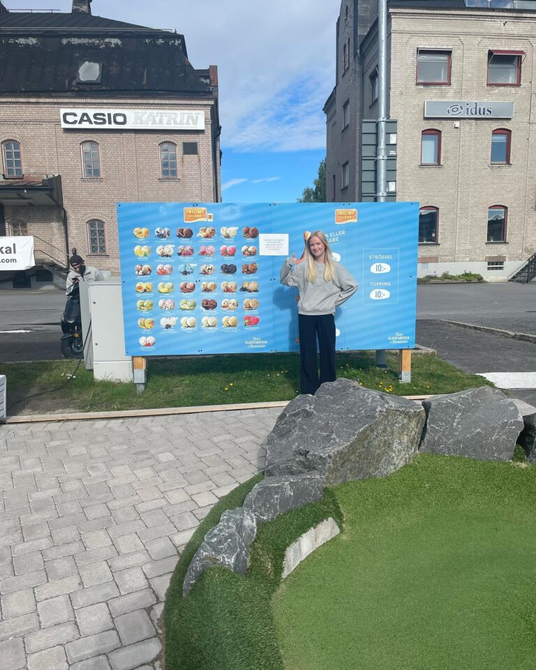 Tummen upp från Matilda! Banorna står redo och glassen påfylld. Vädret är glassigt och golfigt️ Välkomna till Kronholmen på en runda! #härnösandsgolfglass #kronholmenhärnösand #äventyrsgolf #glassigtväder #holeinone #högakusten #sverigesbästasommarstad